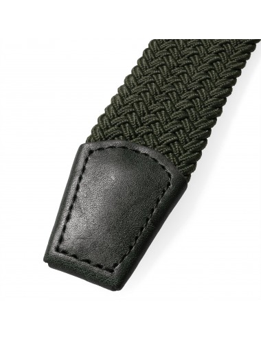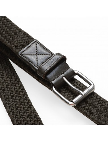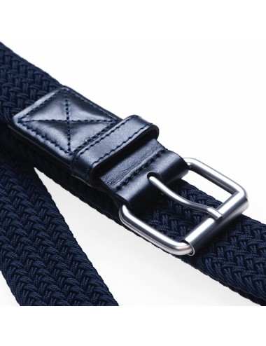 The Jackson Belt is woven from flexible polyester cording. It features a metal buckle and leather detailing. One size.