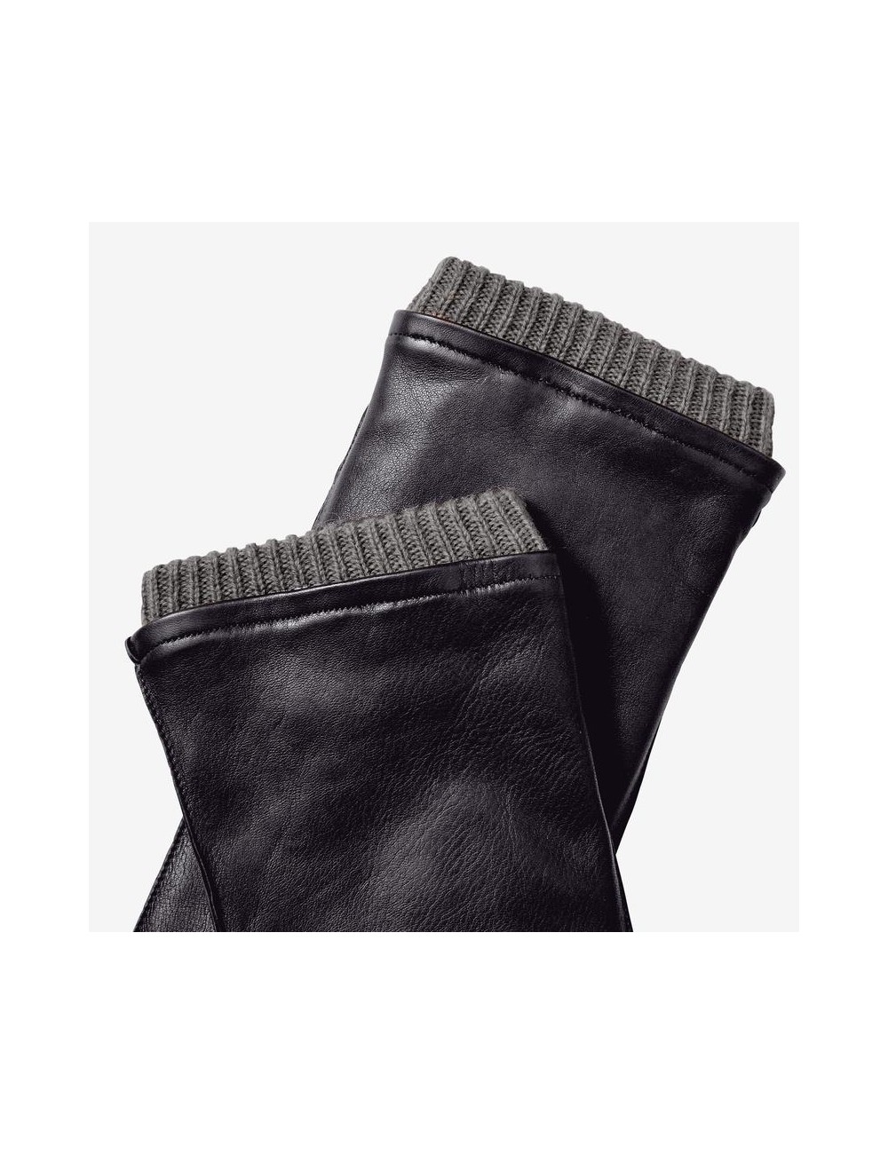 MEN'S LEATHER GLOVES WITH RIBBED CUFF - BLACK