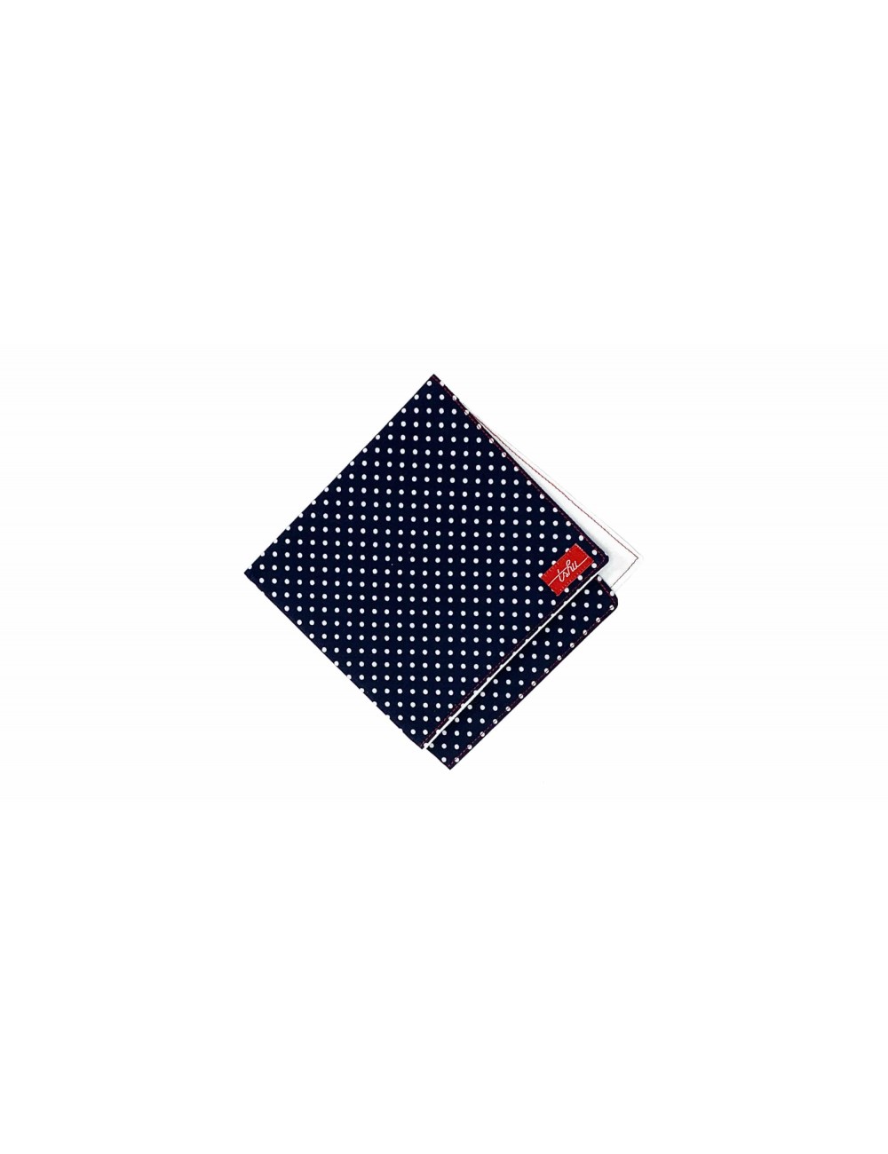This popular navy handkerchief is ethically made by hand. Its contour is adorned with red topstitching that matches the red TSHU tag on its bottom corner. Featuring crisp white polka dots on fine navy cotton, the two-ply Gilbert handkerchief is doubled up for more absorbency. On the reverse side, a lovely white organic cotton sateen that perfectly complements the pattern. So, which side are you on? Print of Plain?