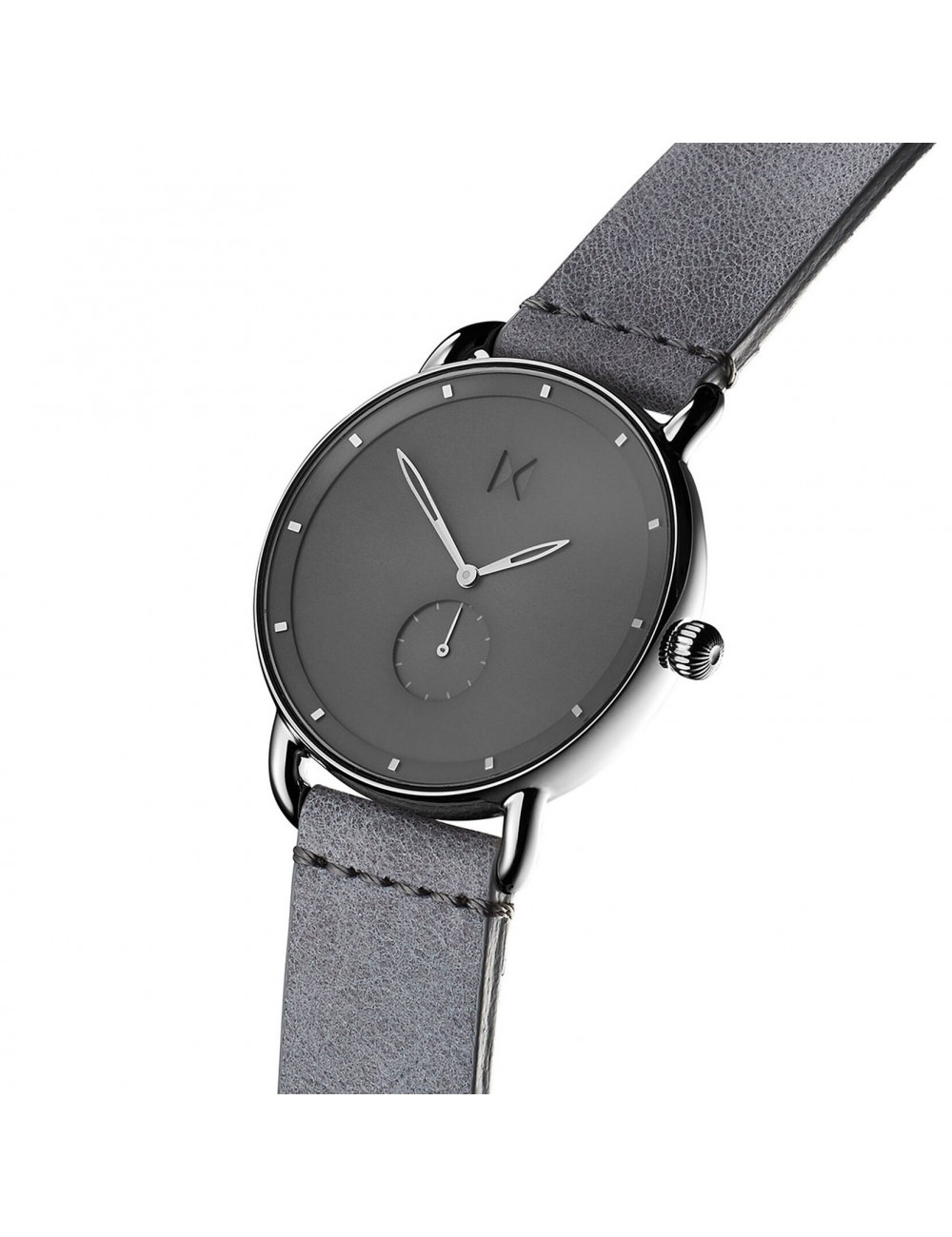 Go back to the future. This 41mm retro-future inspired timepiece features a modern dial bound by domed glass and a 1950's vintage inspired case. The Gotham wears a monochromatic stone grey and silver colorway.