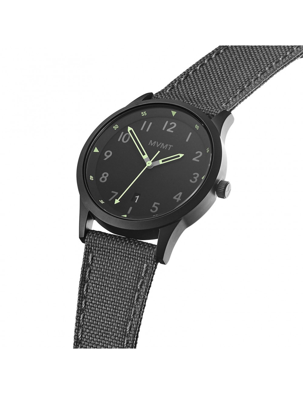Have a field day. Inspired by the outdoors and the gear to get you there, the Field features our first fixed number dial and a water resistant 41mm case. Featuring brushed gunmetal stainless steel, a dark grey nylon canvas strap and green lume dial accents.